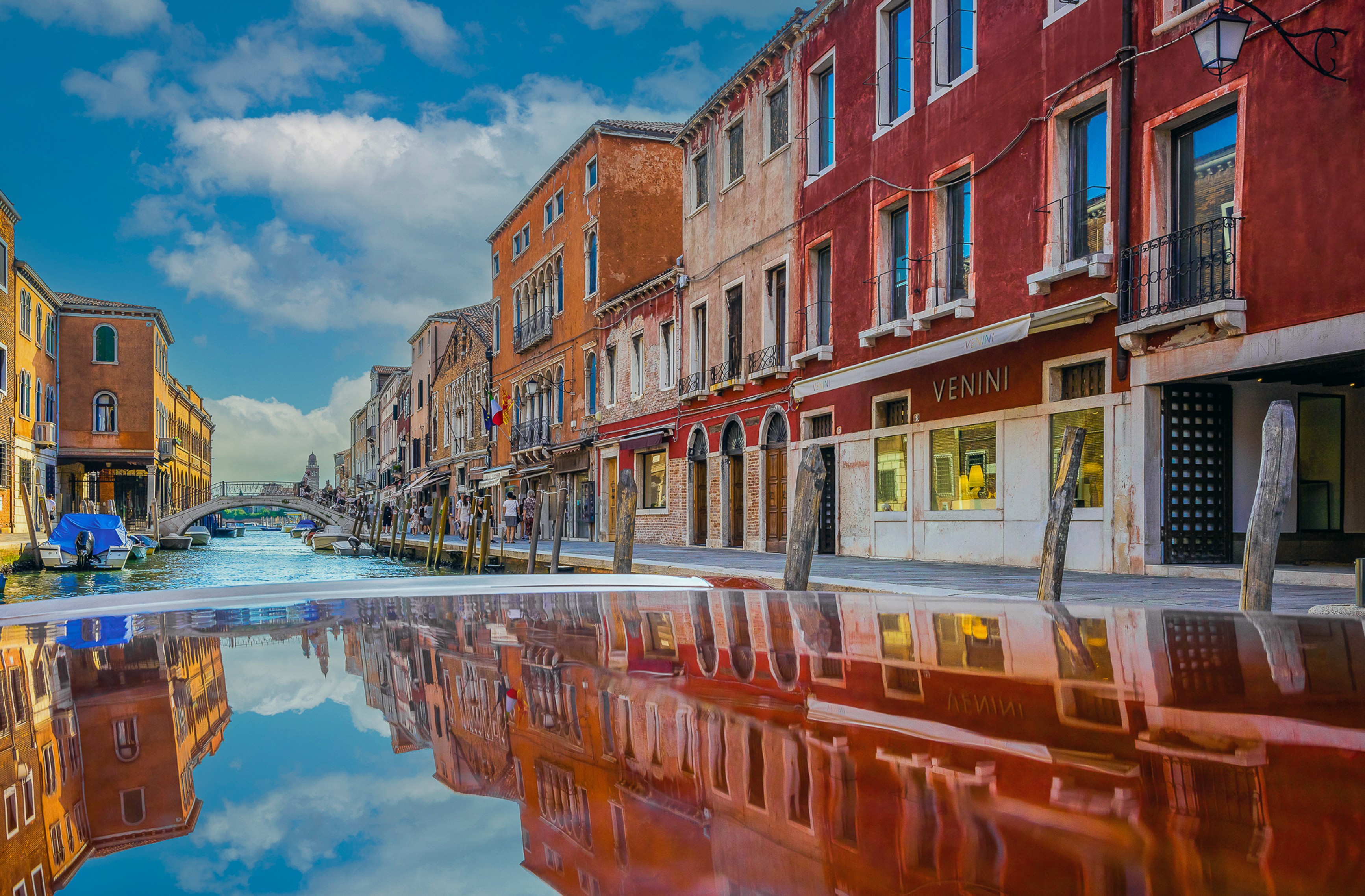 L'arte vetraria veneziana ha radici che affondano ancora più lontano. La prima testimonianza scritta risale al 982 d.C., quando in un atto notarile compare la figura di un fiolario, il vetraio specializzato nella produzione di ampolle. Ma è nel XIII secolo che la corporazione dei vetrai si struttura formalmente, e con essa nasce l'ecosistema produttivo che darà a Murano la sua identità definitiva. Il Rio dei Vetrai, il canale che attraversa il cuore dell'isola, diventa il centro fisico di questo universo: lungo le sue sponde si concentrano le fornaci e le botteghe più importanti, molte delle quali attive ancora oggi, con i loro camini che segnano il paesaggio come antiche sentinelle di pietra e fuoco.