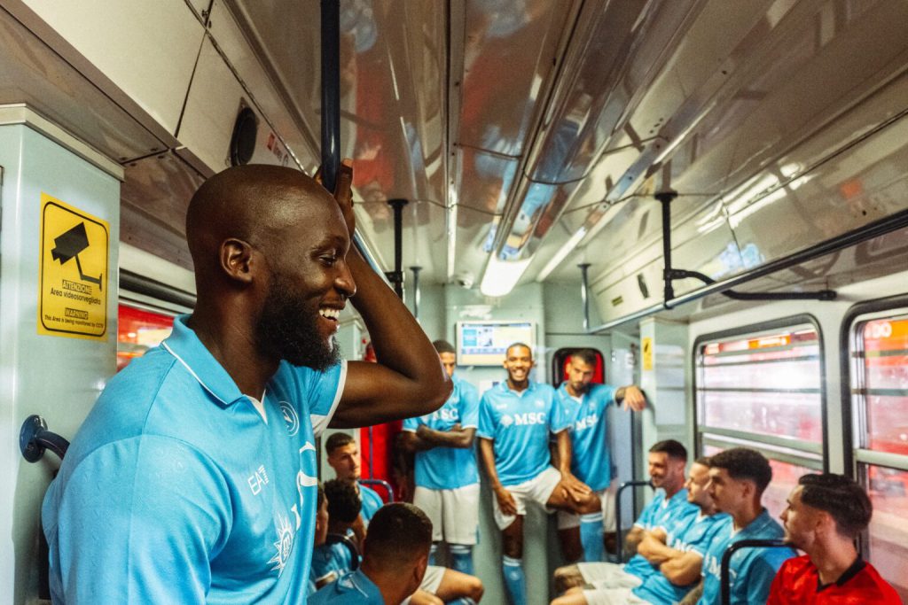 Chiaia, winner of the Grand Prix de Versailles, also brought good luck to Italy’s new champions: in a tightly secured setting, the photo later used in SSC Napoli’s annual calendar was taken there—proof that in this city you might even find the team captain acting as a train conductor. (© SSC Napoli)