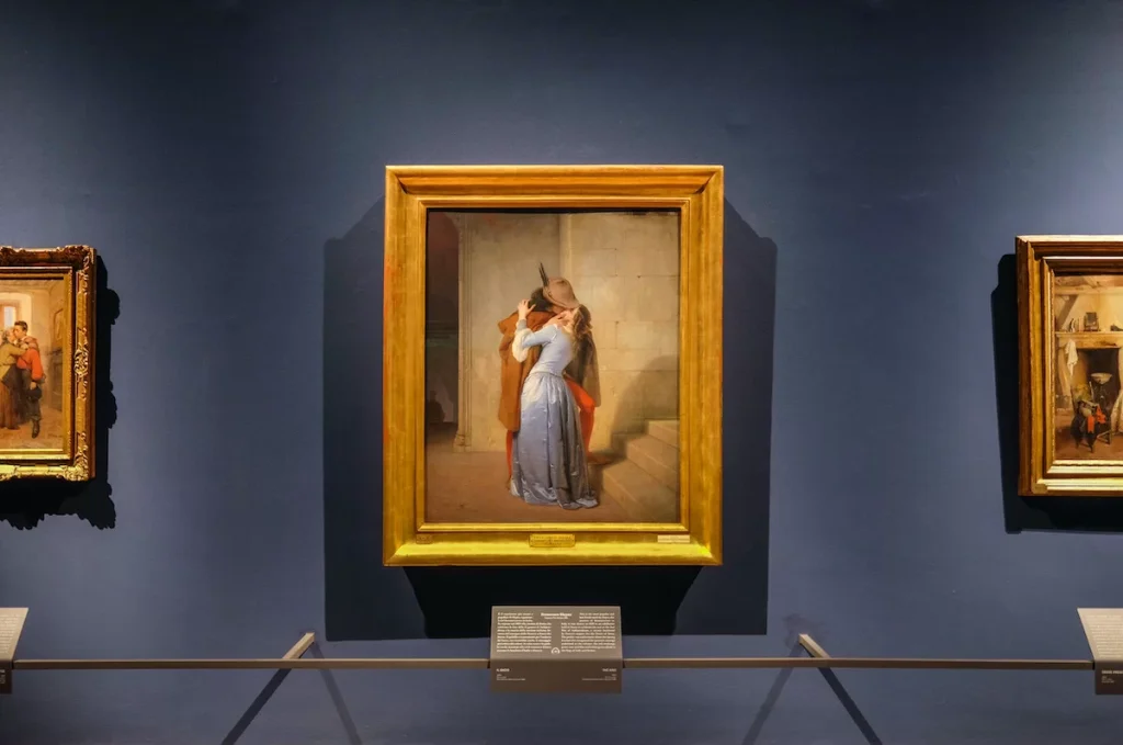 Come non ricordare Il bacio di Hayez, divenuto simbolo di un'intera Italia Risorgimentale ed emblema dell'arte che si fa portavoce dello spirito rivoluzionario e formatrice di coscienze alla lotta nella storia.