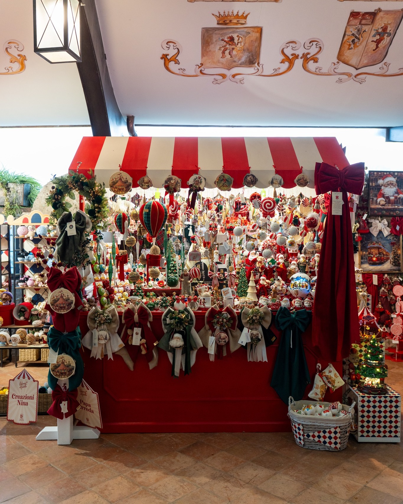 Tra i cortili e le stanze, ogni zona del Castello accoglie bancarelle dove è possibile acquistare creazioni artigianali natalizie di ogni genere. I classici immancabili sono candele profumate, decorazioni fatte a mano, antiquariato, oggetti in legno, ceramica, stoffa. Ma non mancano bambole di pezza, soprammobili natalizi fatti a mano, sculture in argilla.