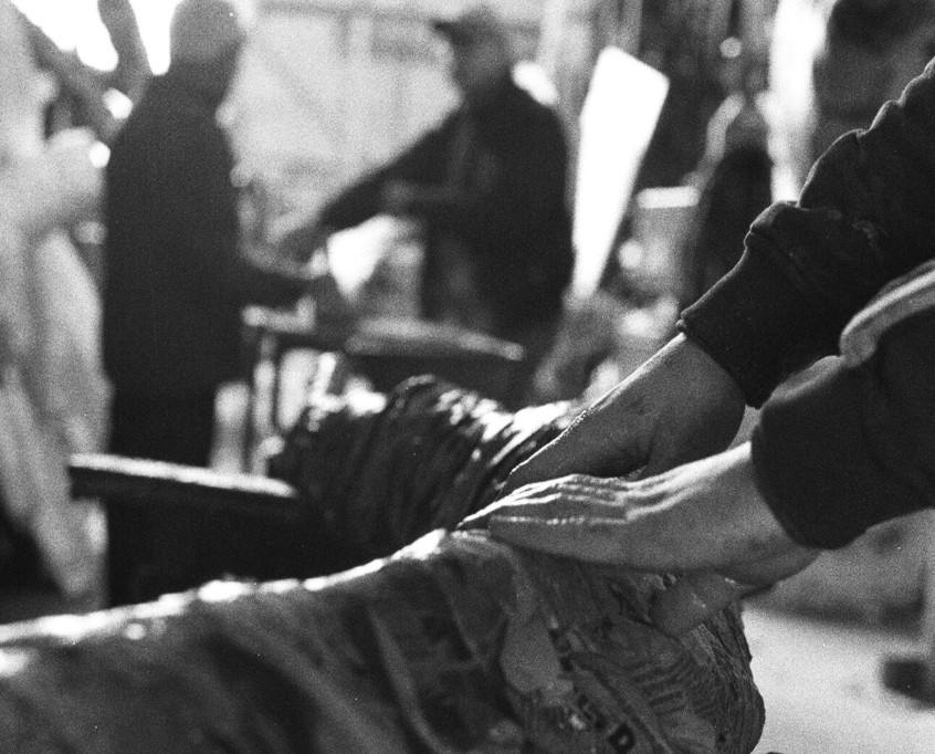 La lavorazione si basa su un processo artigianale che richiede competenze tecniche e maestria artistica. Il materiale viene realizzato utilizzando tonnellate di fogli di carta di giornale impastati con una colla naturale composta da acqua e farina. Il procedimento parte dalla creazione di un modello in argilla, sul quale viene effettuata una colata di gesso per ottenere il negativo del calco. All'interno dello stampo vengono applicate le strisce di carta imbevute nel composto. Una volta staccato, il lavoro viene levigato con carta vetrata e decorato con colori acrilici o a tempera, protetti da una vernice lucida.