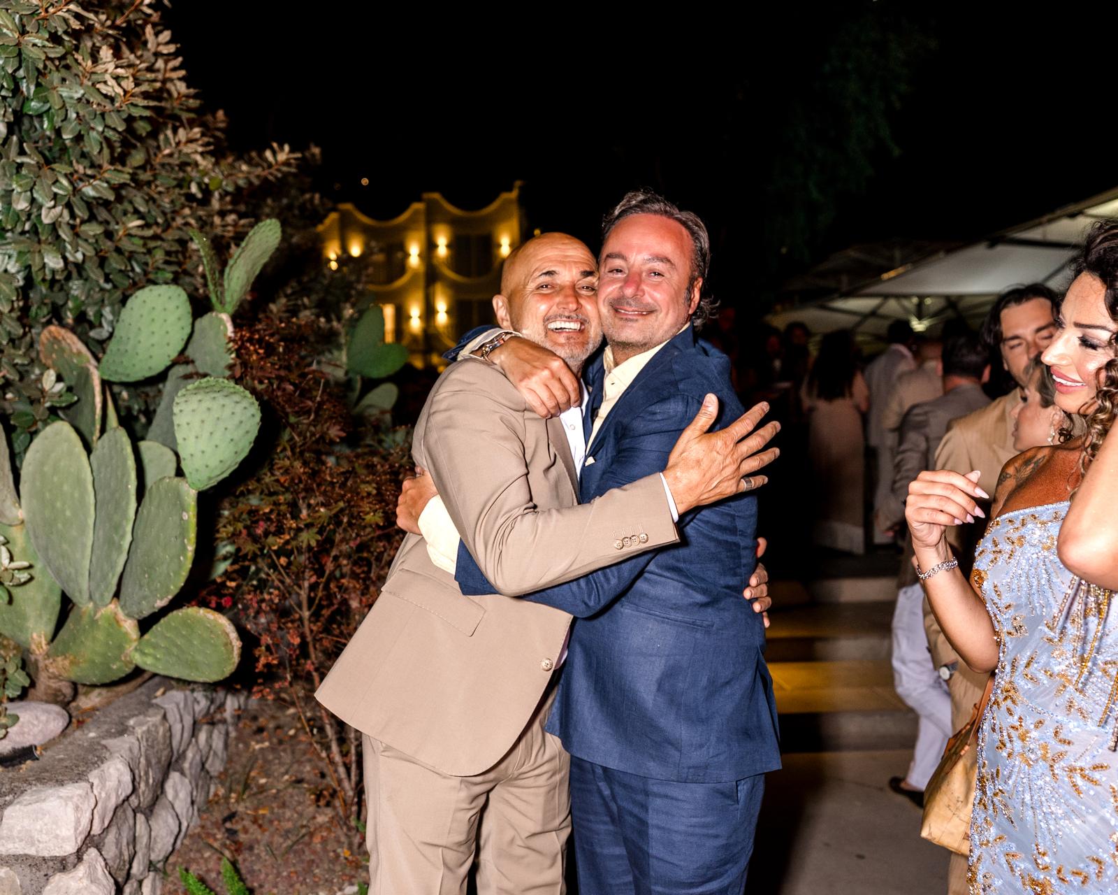 Ma a far parlare non sono stati solo il mare, l’ottimo cibo e la musica. Tra gli ospiti, due nomi che hanno segnato l’attualità calcistica italiana: Gabriele Gravina e Luciano Spalletti. L’ex Ct della Nazionale, reduce da un addio difficile e poco consensuale dopo la mancata qualificazione al Mondiale, è arrivato a sorpresa in tarda serata, accolto da una pioggia di selfie e abbracci. I due hanno riso e scherzato sotto le stelle di Massa Lubrense.